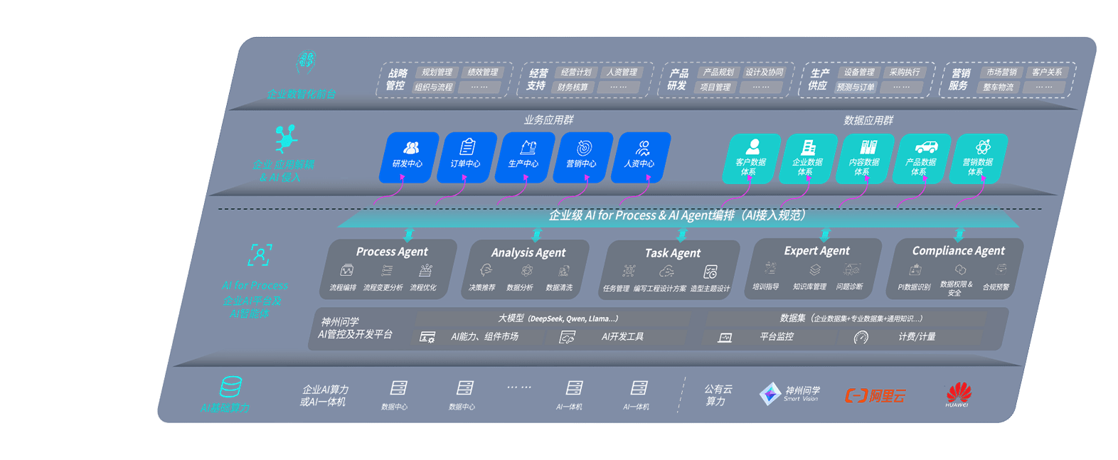 口袋牛店问学智车解决方案是一套基于AI技术的汽车行业智能化系统,,,,覆盖从底层算力到顶层AI应用的全栈方案。。方案由算力层、、、、模型层和应用层组成:算力层,,,,方案支持多种一体机配置,,,具备云端灵活部署、、、、多云适配以及动态优化计算资源的能力;模型层,,,,口袋牛店问学平台版提供了企业级AI应用一站式构建与管理平台,,支持基于后训练强化技术的汽车企业专属模型的训练、、、评测和运营;应用层,,,口袋牛店问学DeepSeek版提供包括超级员工、、、智能招采、、智能营销、、、、智能客服、、、AI for BI等一系列解决方案,,,可助力汽车行业实现数字化转型,,,,让管理更智能、、、响应更敏捷。。。。